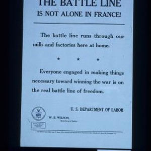 The battle line is not alone in France! The battle line runs through our mills and factories here at home. Everyone engaged in making things necessary toward winning the war is on the real battle line of freedom