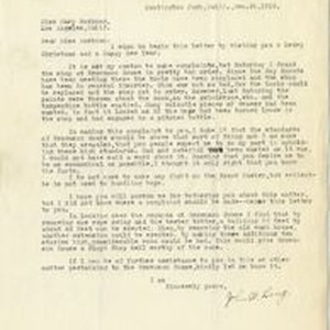 A letter typed on plain paper to Mary J. Workman from John Lang complaining about general disorder caused by the Boy Scouts at the Brownson House shop.
