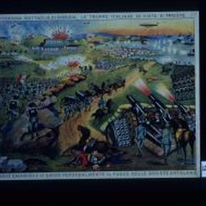 La vittoriosa battaglia di Gorizia, le truppe Italiane in vista di Trieste. Re Vittorio Emanuele III dirige personalmente il fuoco delle grosse artiglierie