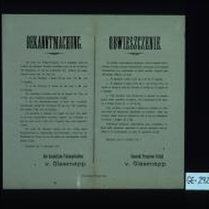 Bekanntmachung. Auf Grund der Polizeiverordnung vom 9. September 1915, den Verkehr mit geistigen Getranken betreffend, setze ich bis auf weiteres den Hochstpreis, um den das gewohnliche Bier verkauft oder ausgeschenkt werden darf, wie folgt fest: ... Warschau, den 14. September 1915. Der Kaiserliche Polizeiprasident v. Glasenapp. ... Obwieszczenie. ... Cesarski Presydent Policji v. Glasenapp