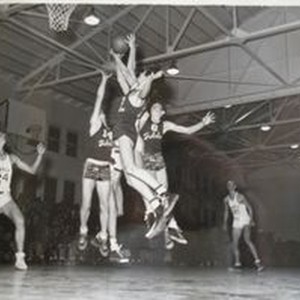 Photo--Black and white: Analy High School basketball B team of 1949-50. Analy Tigers vs Petaluma. Analy 27--Petaluma 22.