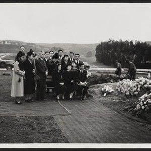 A photograph of all of the attendees at Hiroshi Sugiyama's reburial ceremony next to the gravesite, 1948 December 15, Golden Gate National Cemetary, 1300 Sneath Lane, San Bruno, California, USA. Photo by Kameo Kido Photography, 1496 Ellis Street, San Francisco, California, USA.