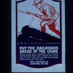 Put the railroads ahead of the game. Victory in the war is dependent upon efficient transportation. That's why railroad men must stay on their jobs and see that the railroads of the country do their part. The nation is counting on you