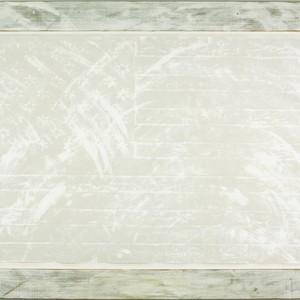 A rendition of the American flag is produced in white on white paper. The five-point stars on the original American flag are replaced by Stars of David.