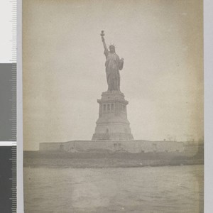 The Statue of Liberty viewed from the out on the water of New York Harbor.