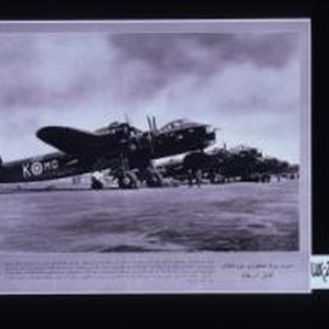 They "conventrated" Cologne. When they bombed British towns the Luftwaffe called it "conventrating." On May 30th over 1,000 British bombers dropped the biggest load of bombs in history, on Cologne. But, unlike the Luftwaffe, the R.A.F. do not dump their bombs blindly - they attack German war industry with the clear object of weakening the German Army in the East ... Above: "Stirling" bombers, on of the many types of modern British bombers which "conventrated" Cologne ... [text in Arabic]