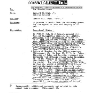 Image / Leonard Bickwit Jr. consent calendar item regarding Conner FOIA appeal, with attachments
