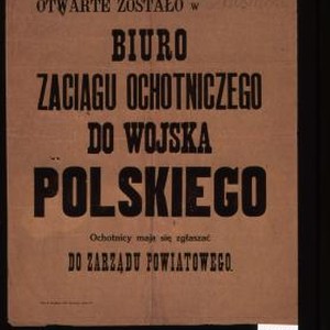 Z rozkazu Naczelnego Dowodstwa otwarte zostalo w Nieswierzu [name filled in by hand, in pencil] Biuro zaciagu ochotniczego do Wojska Polskiego. Ochotnicy maja sie zglaszac do Zarzadu Powiatowego