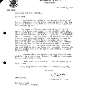 Frederick B. Lyon letters to Robert Murphy regarding Minter Wood and Robert T. Miller