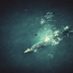 An aerial view of a whale swimming in the water at Patrick's Point State Park.