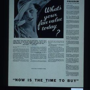 What's your face value today? "Hard times" were never easy on good looks! If you've been holding down the beauty budget, now's the time to do a right-about-face ... "Now is the time to buy."