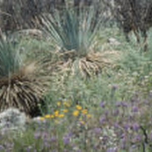 Plants and flowers in bloom six and a half months after a fire in Cow Canyon Saddle.