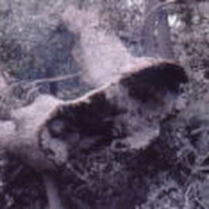 A tree still burning three weeks after fire.