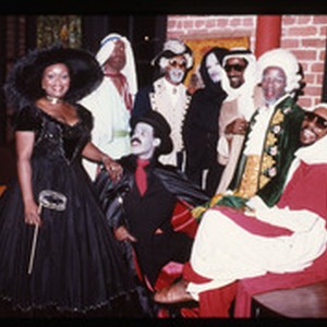Image from a collection of 35mm photographic slides depicting nightlife events, circa 1970-1977, including images of a Sylvester concert and what may be Halloween 1977. The images predominantly depict Black performers and attendees, including people in costumes and drag. These slides were salvaged by the donor, Deborah Deegan.