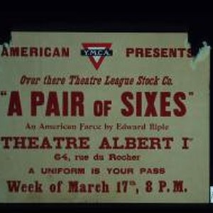 American Y.M.C.A. presents Over There Theatre Stock Co. "A Pair of Sixes." An American farce by Edward Riple. Theatre Albert Ier ... A uniform is your pass. Week of March 17th, 8 P.M