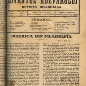 Cuvantul Adevarului este publicația periodica a grupului majoritar penticostal din Romania intre anii 1929-1937 [Description (original non-English/roman language/script)] The Word of Truth is the periodical bulletin of the major Pentecostal group from Romania between 1929-1937. [Description English/roman)]