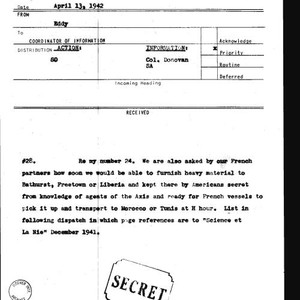 Image / Eddy dispatch to Coordinator of Information number 28 regarding heavy material