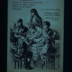 Pressant appel a la solidarite en faveur des soldats des departements envahis, enfants des villes martyres, victimes de la guerre, refugies, qui retrouvent un Foyer a la cantine refuge du VIme, Rue de l'Abbaye 16, Place St. Germain des Pres