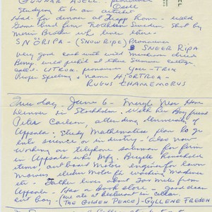 Text / Handwritten notes on Sweden from Northern Europe vacation