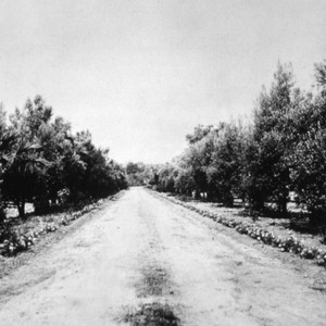 Henry E. Huntington bought the Shorb Ranch on January 2, 1903. This was the land that became the San Marino ranch. The label that accompanies this photo in the album reads "No. 63 Original Shorb entrance drive, about 1905."