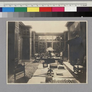 A view of Mr. Huntington's library before it was moved to San Marino. Another copy is photCL 107 folder 27 (1). The note which accompanies that copy reads "Interior of library room at 2 East 57th Street, New York City, showing part of Henry Edwards Huntington before the founding of the Henry E. Huntington Library and Art Gallery (1919) and the erection, in 1920, of a library building on Mr. Huntington's San Marino (California) estate. Right to copy or reproduce reserved. 2-17-36."