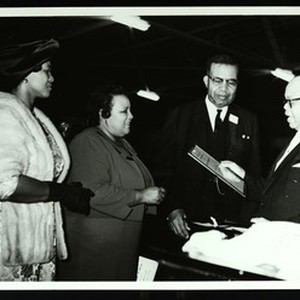 2 photographs of Bishop O.T. Jones, Sr. presenting a Church of God in Christ award of appreciation to an unidentified woman, Chicago, Illinois, [s.d.]. Also in the image is 1 unidentified women and 1 unidentified man. From Corby Bush? "Hollis Photo Studio, 2333 W. Madison St., phone 421-4618" -- stamped on back. [Description English/roman)]