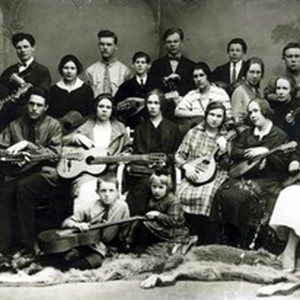 A photograph showing members of a plucked instrument orchestra at the House of the New Testament, 1926-1927 [Description English/roman)]