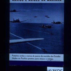 Navios e avioes da marinha. Potentes avioes e navios de guerra da marinha dos Estados Unidos no Pacifico prontos para atacar o inimigo