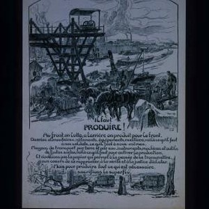 Il faut produire! Au front, on lutte; a l'arriere, on produit pour le front. Denrees alimentaires, vetements, equipements, munitions, voila ce qu'il faut a nos soldats, ce qu'il faut a nous-memes ... Mais pour produire tout ce qui est necessaire, sacrifions le superflu!