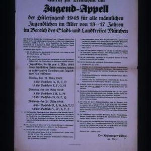 Jugend-Appell der Hitlerjugend 1945 fur alle mannlichen Jugendlichen im Alter von 13-17 Jahren im Bereich des Stadt und Landkreises Munchen