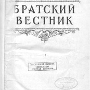 In 1945, The United Union of Evangelical Christians (EC) and Evangelical Christian Baptists (ECB) published the first issue of the Brotherly Herland. Iakov Ivanovich Zhydkov, chairman of the national (USSR) Union of Evangelical Christians and Baptists, became the chief editor. The editorial committee consisted of M.I. Golyaev, M.A. Orlov, and Alexander Vasi'yevich Karev. The leadership of the NUECB (all-National Union of Evangelical Christian Baptists) set the main task of the journal to form "Unity" in the midst of protestant churches of the moderate type. Thus, in the preface of the first issue of the journal it was stated, "The task of the Brotherly Herald is to work in such a way that unity might penetrate the bodies and blood of all brothers and sisters and become indestructible even going through tests and difficulties. May the Lord Himself make one united nation of two movements in His Name. Our mottos are the words from the Holy Scripture, they are dear to our hearts, 'We preach Christ crucified' (1 Cor. 1:23), 'Stand firm in one spirit, contending as one man for the faith of the gospel' (Phil. 1:27), 'One Lord, one faith, one baptism' (Eph. 4:5)". ❧ The second purpose of the periodical (which was to be published every other month) was to inculcate "correct training" of church members (correct from the spiritual as well as civic points of view). This purpose was successfully fulfilled by publication of texts of sermons, spiritually-edifying articles, official appeals and reports. The journal consisted of the following contents: 1. Religious and patriotic Evangelical Christians and Baptists and the Motherland. 2. Sermons and spiritual articles. 3. From history of the Evangelical Baptist movement in USSR. 4. From history of Christianity. 5. Biographies and necrologies of Evangelical Christians and Baptists. 6. Life and activity of NUECB. ❧ The address of the editorial office was in Moscow, Pokrovsky Boulevard, Maliy Vuzovsky Lane, 3. [Description English/roman)] В 1945 году объединенный союз ЕХ и ЕХБ издал первый номер периодического издания «Братский Вестник», главным редактором стал председатель Всесоюзного Совета евангельских христиан и баптистов Я.Жидков. В редакционную комиссию вошли Голяев М.И., Орлов М.А., Карев А.В. Основной задачей журнала руководство ВСЕХБ видело в формировании «Единства» среди протестантских церквей умеренного типа. Так в предисловии к первому номеру журнала писалось: Задача «Братского вестника» - так повести свою работу, чтобы дело единения вошло, в плоть и кровь всех братьев и сестер, чтобы оно стало нерушимым даже при испытаниях и трудностях, и чтобы теперь уже Сам Господь соделал из двух течений один народ во имя Свое. Нашими лозунгами являются дорогие всем нам слова Св. Писания: ‹Мы проповедуем Христа распятого› (1 Кор. 1, 23) ‹Стойте в одном духе, подвизаясь единодушно за веру евангельскую› (Фил. I, 27) ‹Один Господь, одна вера, одно крещение› (Ефес. 4, 5)». ❧ Вторая цель этого периодического издания которое планировалось издавать один раз в два месяца было прививать «правильное воспитание» членов церкви «как с духовной, так и с гражданской точки зрения» . Данная задача достаточно успешно выполнялась посредством публикации проповедей, духовно-назидательных статей, официальных обращений и отчётов. Журнал состоял из следующих рубрик: 1. Религиозно-патриотический Евангельские Христиане и Баптисты и родина. 2. Проповеди и духовные статьи. 3. Из истории Евангельско-Баптистского движения в СССР. 4. Из истории Христианства. 5. Биографии и некрологи Евангельских Христиан и Баптистов. 6. Жизнь и деятельность ВСЕХИБ. 7. Жизнь общин на местах. 8. Корреспонденция. ❧ Адрес редакции находился в г. Москве, Покровский бульвар, Малый Вузовский пер., дом. 3." [Description (original non-English/roman language/script)]