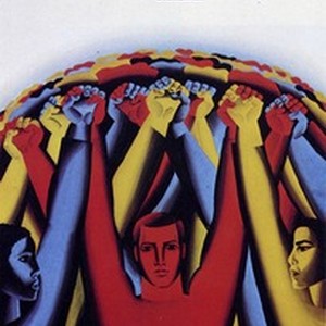 Soviet poster. Caption reads, "Разных народов сыны крепкою дружбой сильны / Raznykh narodov syny krepkoiu druzhboi sil'ny", meaning, "Сhildren of many a land, strong for our friendship we stand". [Description English/roman)]