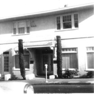 Photo--black and white: O'Leary Funeral Home on south east corner Bodega Avenue and High Street. Photo taken circa 1950s. Corner where Wells Fargo Bank currently (circa 2008) is located .