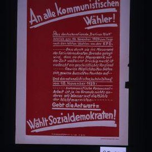 Image / An alle kommunistischen Wahler! ... Wahlt Sozialdemokraten!