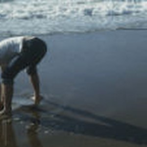 Student John Tarr digs in the sand at Morro Bay.