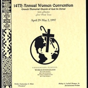 Program for the 14th Annual women convention, Texas Southeast Second Ecclesiastical Jurisdiction, Crouch memorial Church of God in Christ, Fort Worth, Texas, 1997 April 29 - May 2. [Description English/roman)]