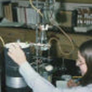 Cheryl Anderson conducting an experiment with leech muscles in Zoology 168 class.