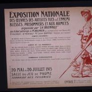 Exposition nationale des oeuvres des artistes tues a l'ennemi, blesses, prisonniers, et aux armees, organisee par "La Triennale," ... 20 mai au 20 juillet 1915, Salle du Jeu de Paume, Terrasse des Tuileries. ... Entree 1 Fr. au profit de la Caisse de Secours de la Fraternite des Artistes