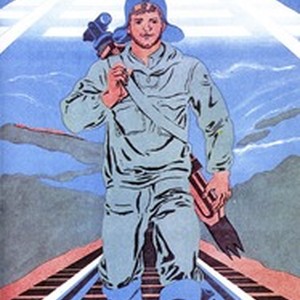 Soviet poster. Caption reads, "Дорогу в будущее проложим! / Dorogu v budushchee prolozhim!", meaning, "We will build the road to the future!". [Description English/roman)]