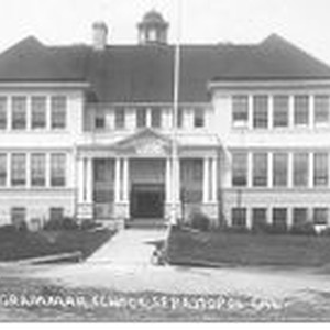 Photo--black and white: The Sebastopol Grammar School, about 1890, on Bodega Avenue dedicated on September 12, 1887. It was located on Bodega Avenue where Parkside School is currently situated (7450 Bodega Avenue)