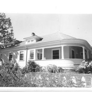 Photo, black and white: Sebastopol house at 7925 Washington Avenue known as the Huntley House. House photographed in 1993 by Evelyn McClure for her book "Sebastopol, California : History, Homes and People."
