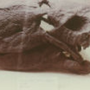 Close-up of a cast of the head of a giant extinct bird from the Eocene epoch.