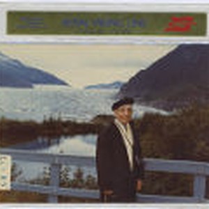 Leon S. Peters standing in front of the Mendenhall Glacier