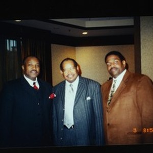 Photograph of 3 unidentified Church of God in Christ men, 1999 December. From Corby Bush? "premium processing plus, Dec. 1999" -- stamped on the back. [Description English/roman)]