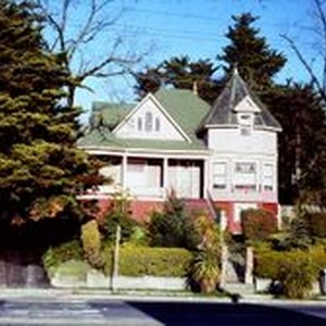 Print, color: 327 North Main street Queen Anne house that was the first hospital in Sebastopol--called Hillside Hospital. One of the oldest and modern residences in Sebastopol, Cal. The was Sebastopol's Hillside Hospital "Old Hospital of Sebastopol." The Hillside Hospital was located south of the current Masonic Lodge in Sebastopol. Dr. John Keating owned the house, establishing a medical practice there. In 1935 the home was renovated into the Hillside Hospital.