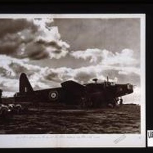 Loading up as dusk falls. This "Wellington" is about to take off for a moonlight raid on Germany. [in Arabic]
