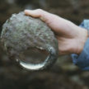 A man holding an abalone shell with an otter hole.
