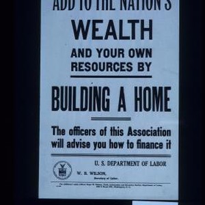 Add to the nation's wealth and to your own resources by building a home. The officers of this association will advise you how to finance it