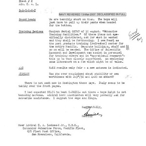 Merrill Comstock letter to Rear Admiral C. A. Lockwood