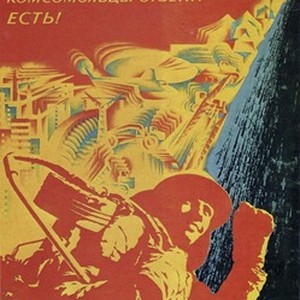 Soviet poster. Caption reads, "Если партия скажет — надо, комсомольцы ответят — есть! / Esli partiia skazhet -- nado, komsomol'tsy otvetiat -- est'!", meaning, "If the party says, "It should be done", the Komsomol will answer, "It will be!" ". [Description English/roman)]